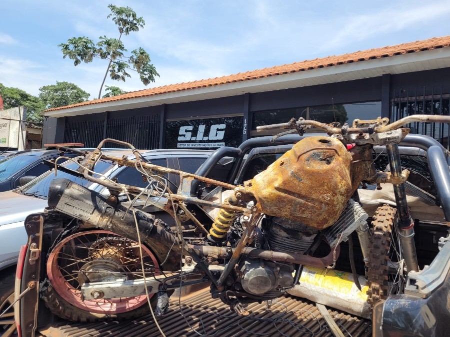 A moto utilizada no crime também foi localizada incinerada com intuito de apagar as provas do crime.