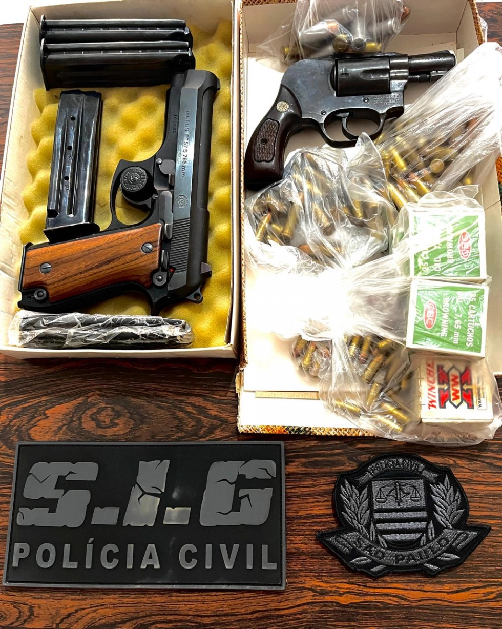 Durante o cumprimento dos mandados de busca os policiais localizaram na fazenda do mandante carregadores com capacidade grande capacidade de armazenamento, além de outras armas e muitas munições na residência do suspeito, no município de Adamantina (SP).