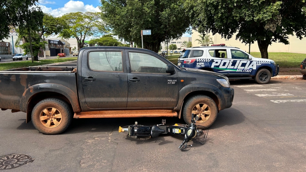Acidente entre bicicleta elétrica e Hilux é registrado em Nova Andradina