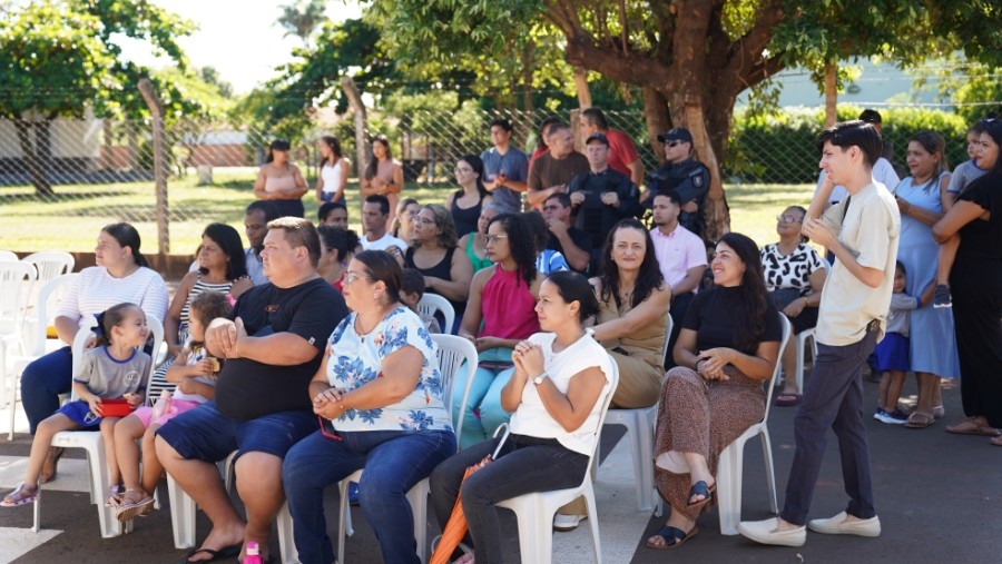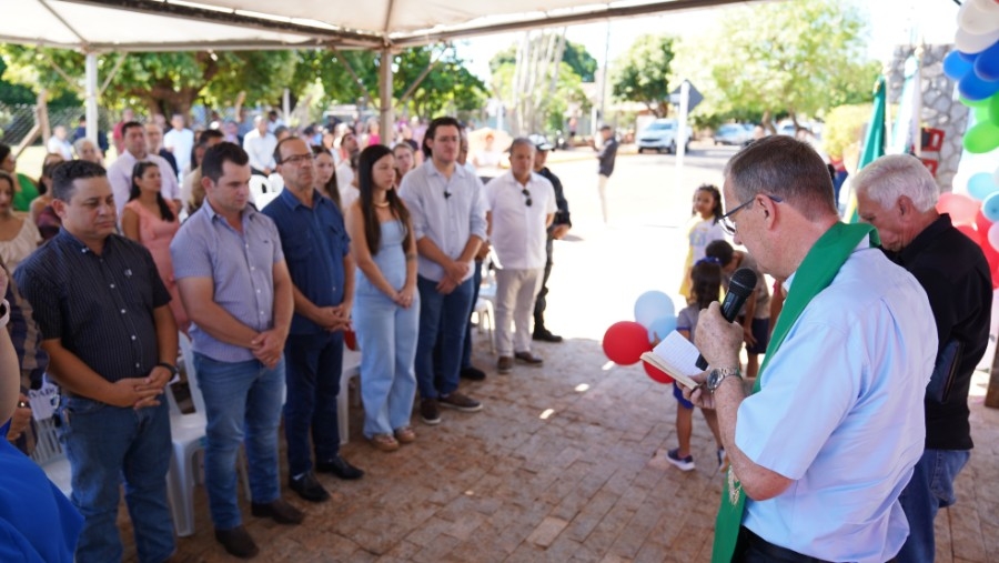 Neste sábado (15), a Prefeitura de Batayporã inaugurou a extensão da Escola Municipal Benedita Figueiró de Oliveira, um novo espaço para atender a demanda da Educação Infantil no município. A cerimônia foi conduzida pelo prefeito Germino Roz e pela secretária de Educação, Fernanda Scarlat Martins, que esteve acompanhada da secretária interina, Fabiana Luiza de Souza. A primeira-dama Thayse Melo, o vice-prefeito Cacildo Paião, representantes do Poder Legislativo, da Polícia Militar e da comunidade local também participaram do evento.
