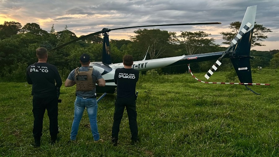 Equipe Dracco (Departamento de Repressão à Corrupção e ao Crime Organizado), com apoio da Delegacia Regional de Ponta Porã, Delegacia de Aral Moreira e do Departamento de Investigação da Polícia Nacional do Paraguay, recuperou um helicóptero avaliado em cerca de R$ 2 milhões na madrugada dessa segunda-feira (3), na fronteira do Paraguai com o Mato Grosso do Sul, após ter sido furtado no Estado do Paraná.