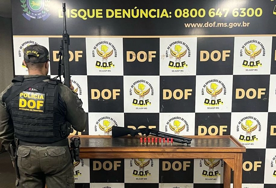 Ainda em Dourados, policiais do DOF apreenderam uma espingarda calibre 12 e nove munições do mesmo calibre. A apreensão foi realizada no Jardim Márcia. Um homem, de 26 anos, foi preso.