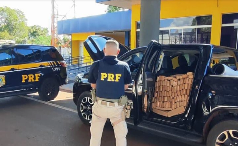 No veículo eram transportados 1.302 quilos de maconha e a caminhonete também possuía registro de roubo/furto, desde novembro de 2024, em Niterói (RJ).