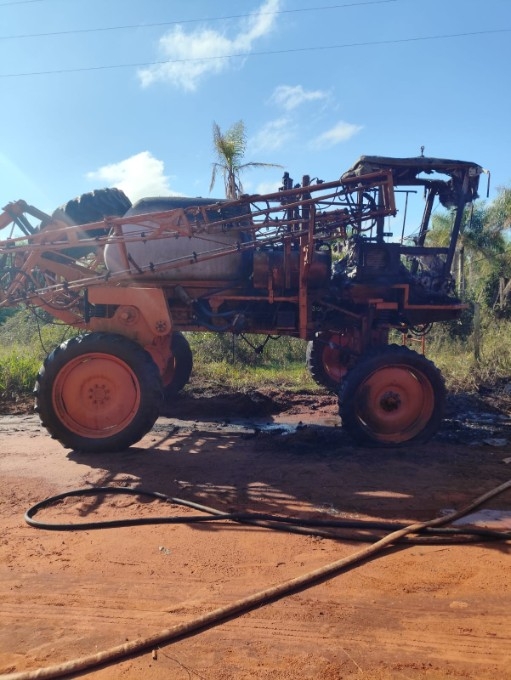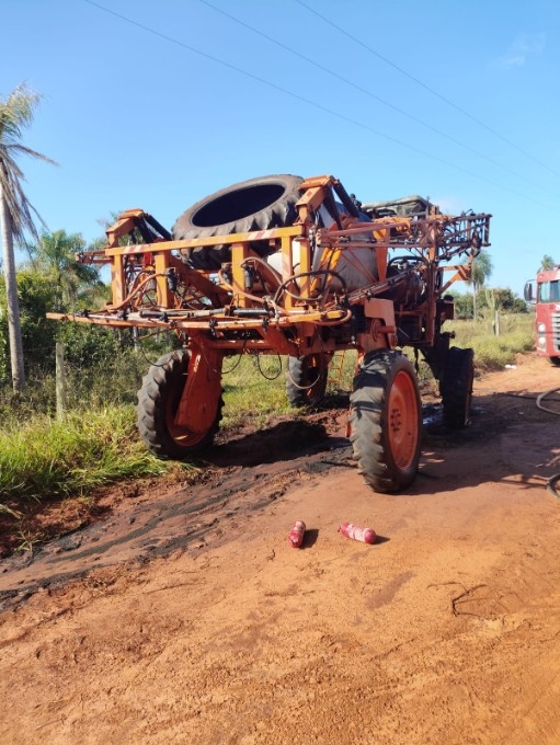 Um veículo Pulverizador Agrícola pegou fogo e os motivos ainda não desconhecidos. Apesar do incêndio, ninguém ficou ferido.