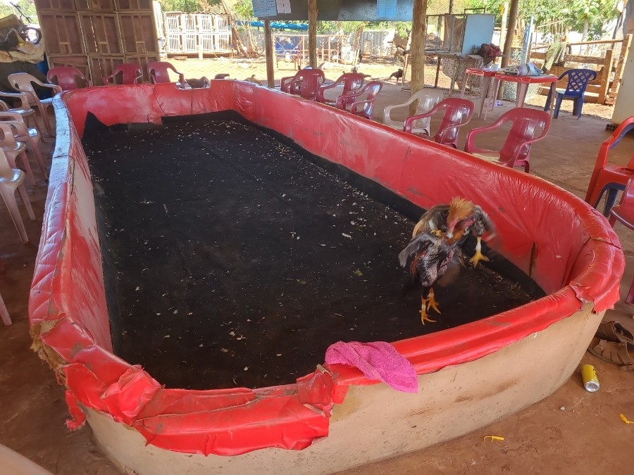 No local, foi constatada a existência de uma espécie de arena de alvenaria, o que indica que esse tipo de evento é recorrente, considerando a estrutura fixa montada para as rinhas. Foram encontrados 44 galos que, além de feridos pelas disputas nas lutas, também eram mantidos em condições inadequadas, sem oferta de água e alimento, caracterizando situação de maus-tratos, conforme prevê a legislação ambiental vigente.