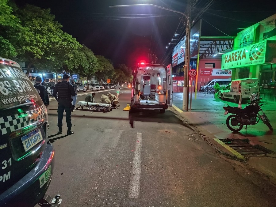 Com o impacto, o motociclista sofreu ferimentos e suspeita de fratura na perna esquerda, foi socorrido e encaminhado ao Pronto-Socorro do Hospital Regional pelo Corpo de Bombeiros Militar.