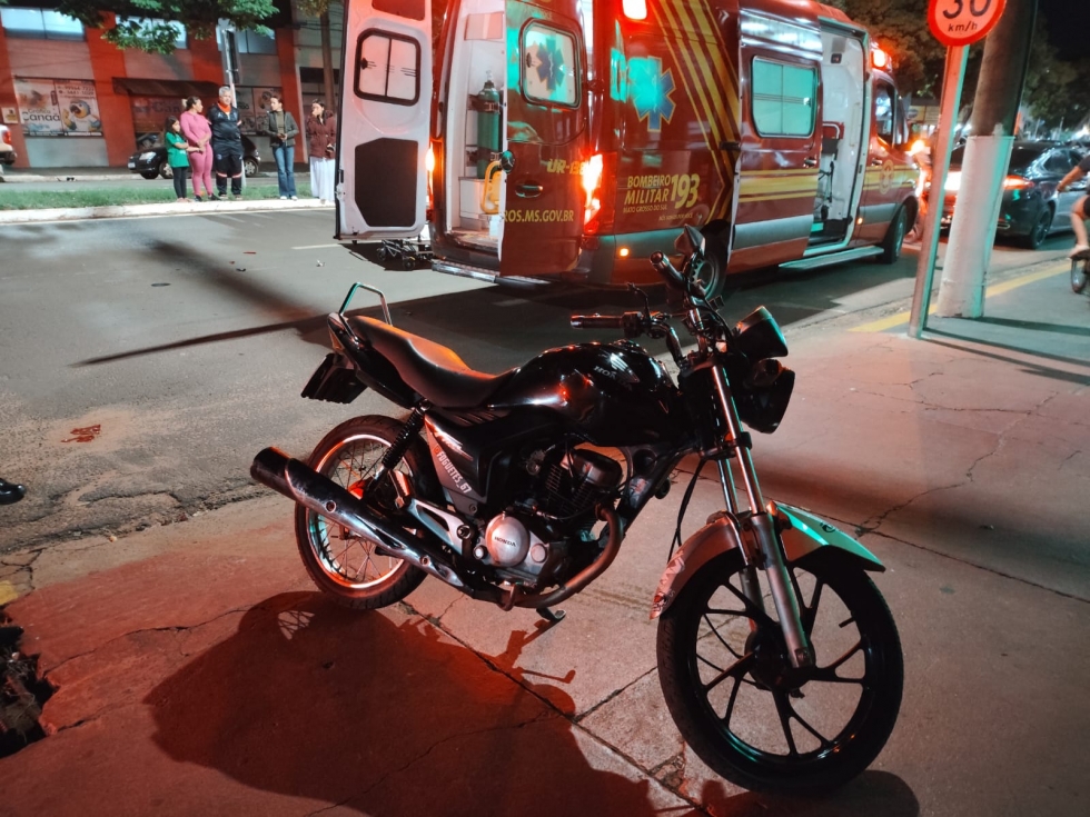Um jovem ficou ferido em uma colisão entre um carro e uma moto na noite desta quarta-feira (11), no cruzamento da avenida Antônio Joaquim de Moura Andrade com a rua Miguel Fabrício Duarte, em Nova Andradina.