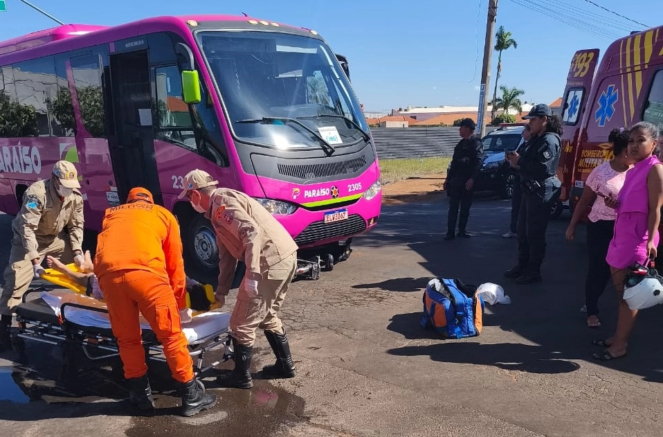 Com o impacto, ela foi arremessada ao solo, e a bicicleta ficou presa sob o micro-ônibus. A vítima sofreu escoriações e foi socorrida pelo Corpo de Bombeiros, sendo encaminhada ao Pronto-Socorro do Hospital Regional.