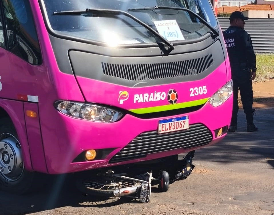 Ciclista é atropelada por micro-ônibus ao cruzar via preferencial em Nova Andradina