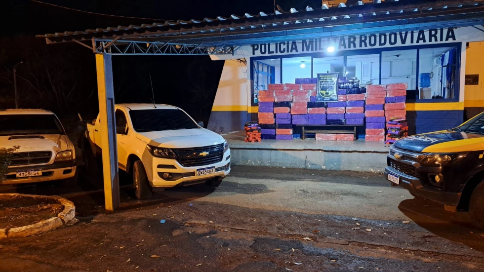 No interior da S10 abandonada, os agentes encontraram 1,7 tonelada de maconha e 5 quilos de skunk, além de identificarem sinais de adulteração veicular.