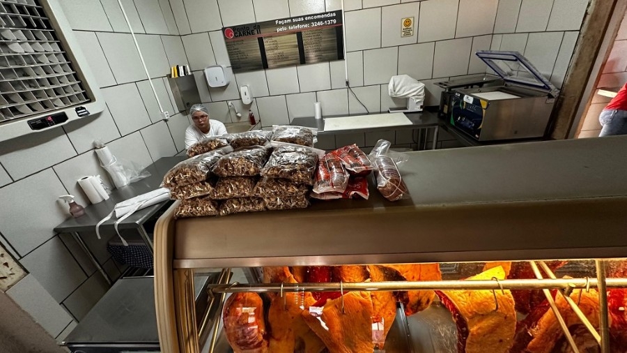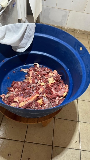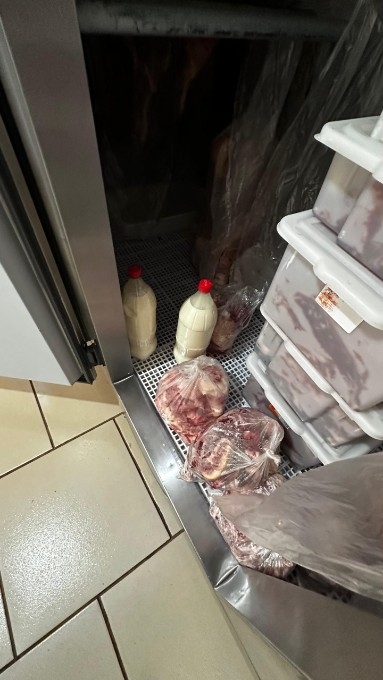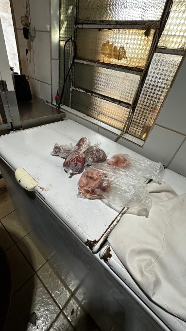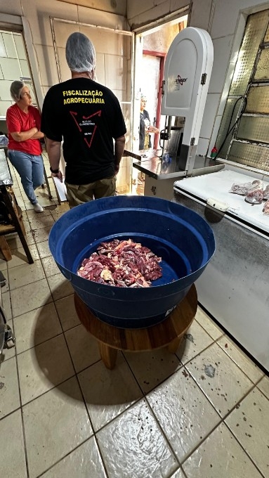 No local, foram encontrados 387 quilos de carne congelada – entre linguiça, carne bovina, charque e carne suína –, além de quatro litros de leite. Nenhum dos produtos possuía selo de inspeção ou informações obrigatórias como data de fabricação, origem, tabela nutricional e validade, o que os tornava impróprios para consumo humano.