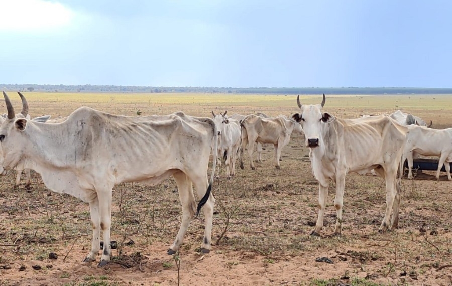 Durante a fiscalização, foram encontrados 737 bovinos em condições críticas, apresentando baixo escore corporal, extrema magreza e sinais de desnutrição severa. Além disso, a equipe identificou quatro animais mortos recentemente, com indícios de morte por inanição. A pastagem da propriedade estava completamente degradada, sem qualquer gramínea disponível para o rebanho.