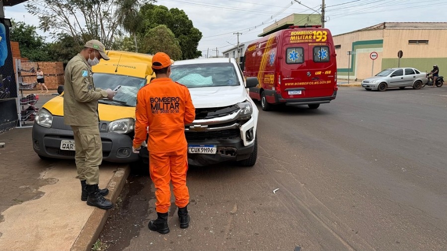 Veículo dos Correios é atingido por caminhonete e duas pessoas ficam feridas em Nova Andradina