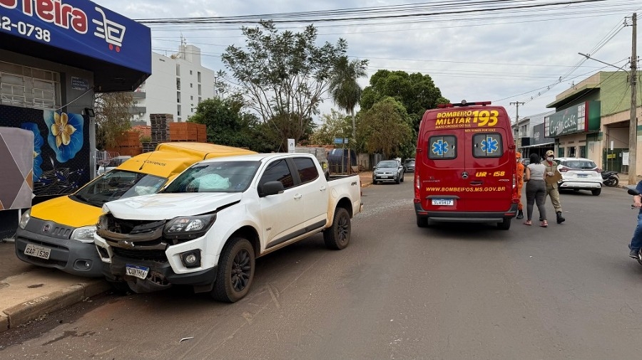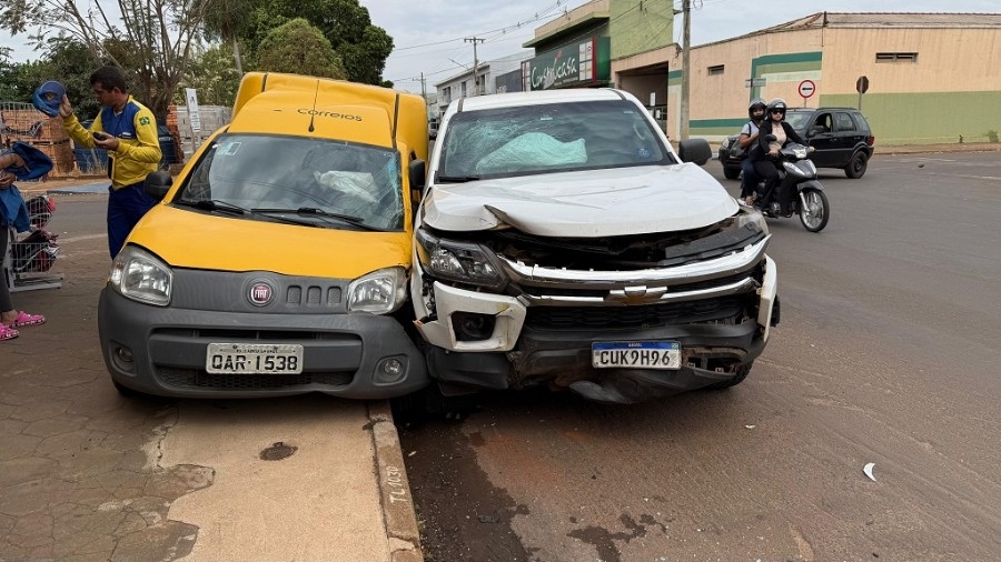 Um Fiat/Fiorino dos Correios foi atingido por uma caminhonete GM/S10 no início da tarde desta terça-feira (16), no cruzamento da avenida José Heitor de Almeida Camargo com a rua Walter Hubacher, região central de Nova Andradina.