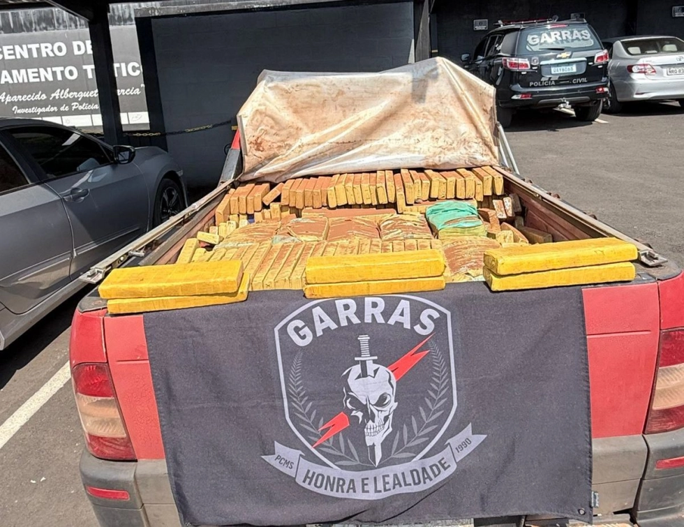 Após tentativa de fuga, Garras apreende 830 kg de maconha em picape e prende jovem de 20 anos em Campo Grande