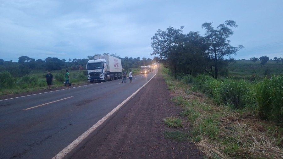 A Polícia Militar Rodoviária (PMR), por meio da base operacional do Vale do Ivinhema, atende a ocorrência e realiza os procedimentos de controle e sinalização da via. O trânsito permanece interditado nos dois sentidos para remoção dos veículos. As causas reais do acidente serão apuradas.