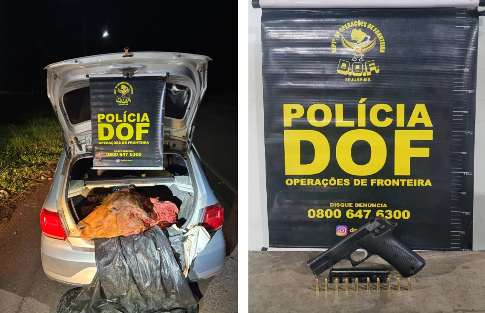 Policiais militares do DOF (Departamento de Operações de Fronteira) prenderam, na madrugada de terça-feira (17), dois homens de 32 e 34 anos e uma mulher de 21 anos, por porte ilegal de arma de fogo e abigeato (furto de gado). A ação ocorreu na rodovia BR-262, na região do posto fiscal Lampião Aceso, em Corumbá.