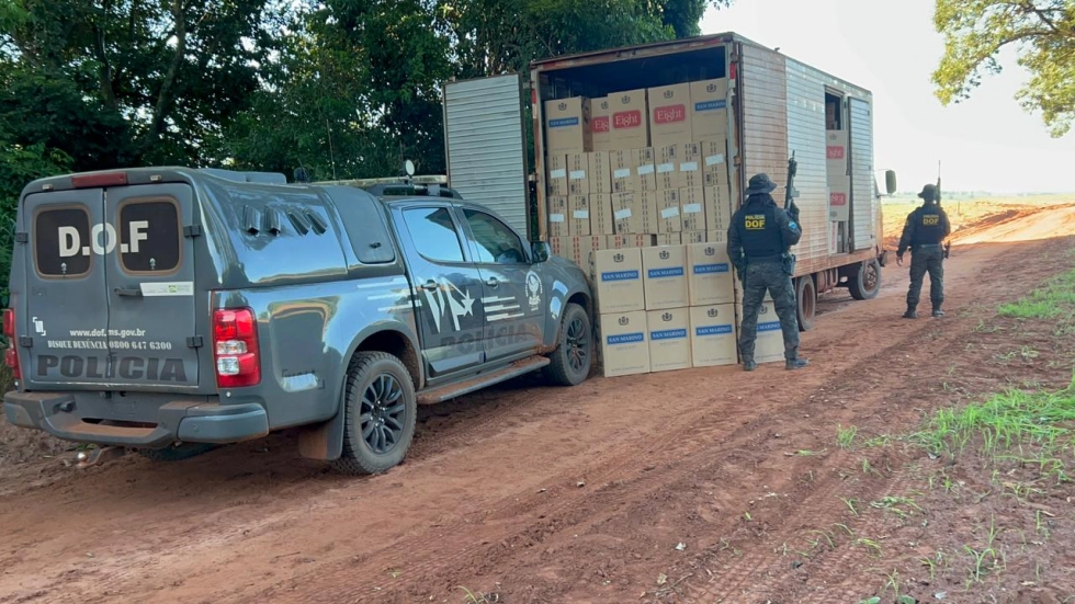 Policiais militares do DOF (Departamento de Operações de Fronteira) apreenderam, na tarde de quinta-feira (19), um caminhão VW/9.150 Delivery carregado com 16 mil pacotes de cigarros contrabandeados do Paraguai. A ação ocorreu na rodovia MS-386, na zona rural de Mundo Novo.