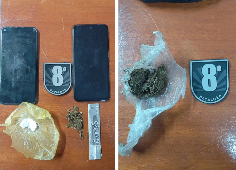 A primeira ação aconteceu por volta das 21h, no bairro Piravevê, nas proximidades da rua Alberto Verri, local apontado como recorrente para uso de entorpecentes. Durante abordagem a um homem de 28 anos, os policiais localizaram uma trouxinha de maconha e um papelote de cocaína. Após pesagem, foram constatados aproximadamente 2 gramas de maconha e 4,2 gramas de cocaína.