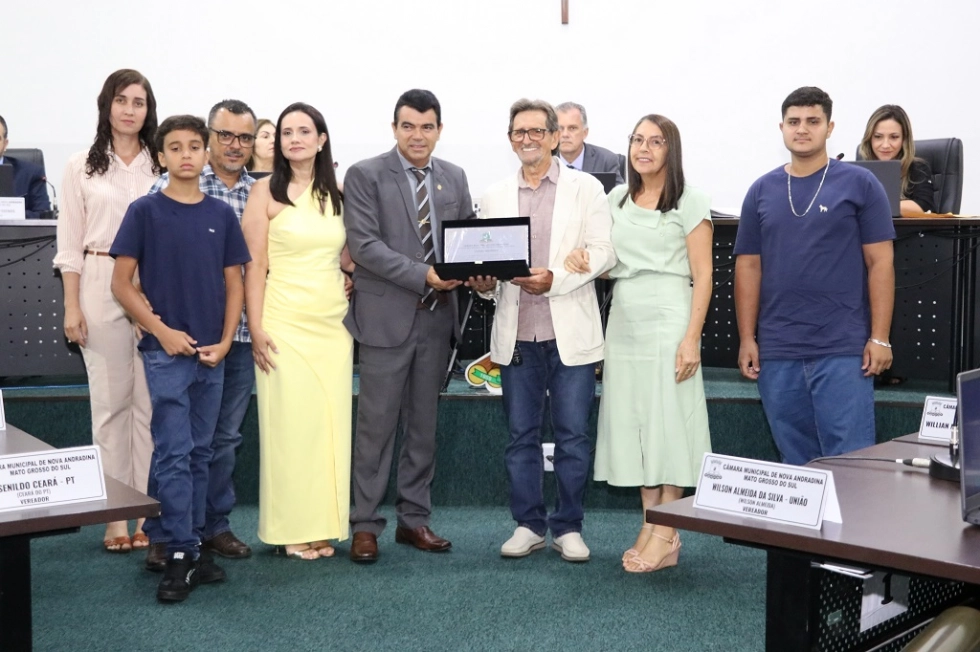 Autor da proposta, o vereador Quemuel de Alencar (União Brasil) ressaltou que a trajetória do homenageado reúne atributos que justificam a mais alta distinção concedida pelo Legislativo municipal. “A trajetória de Ademir Pereira da Silva é marcada pela coragem, pela fé, pela resiliência e pelo espírito empreendedor. Seu exemplo de vida engrandece Nova Andradina e justifica plenamente a concessão do título de Cidadão Honorário”, afirmou.