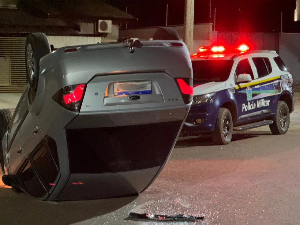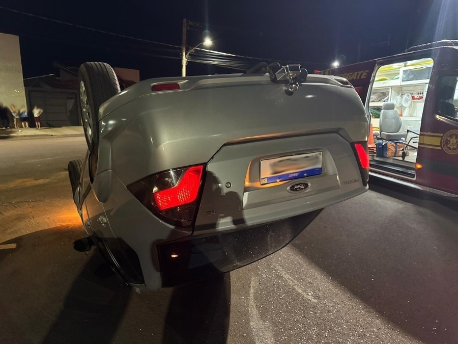 Um acidente de trânsito registrado na noite dessa sexta-feira (27), em Ivinhema, terminou com um veículo capotado na Rua Arceu Tolfo, esquina com as ruas Luiz Rodrigues Ferreira e Osmar de Moraes, no Bairro Itapoã, no Conjunto Habitacional Salvador de Souza Lima.
