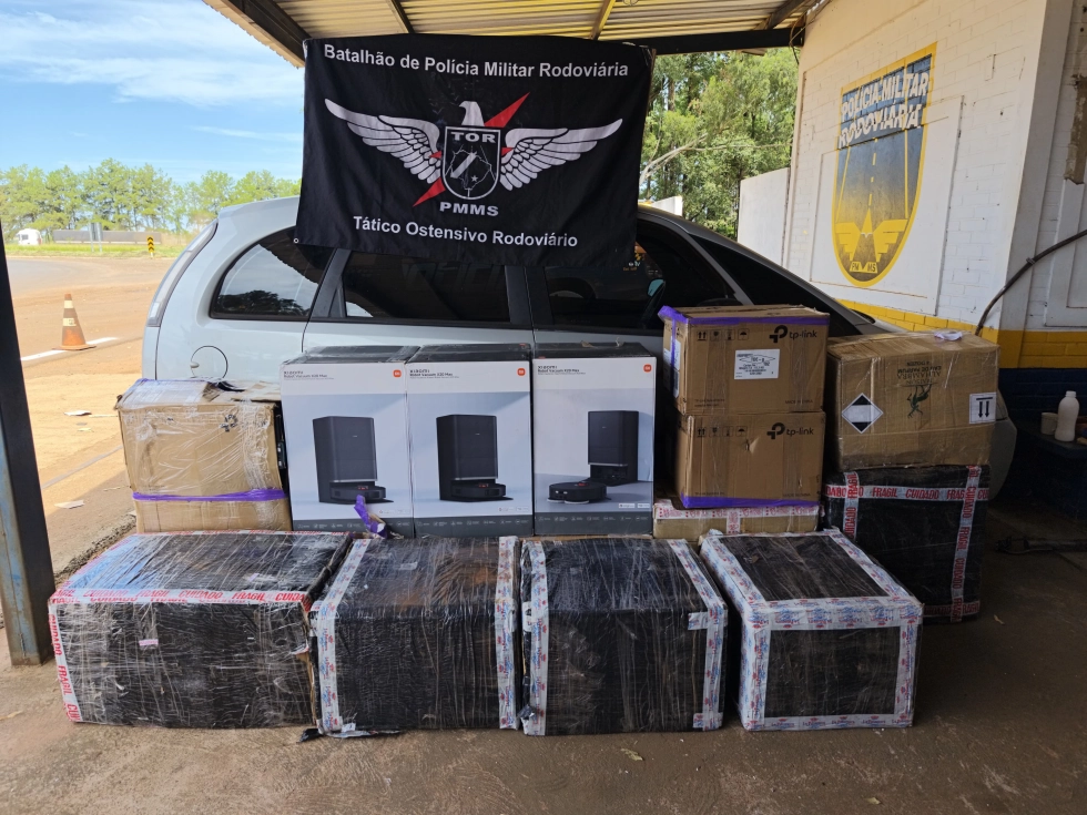 Na madrugada de quarta-feira (4), por volta das 4h, uma equipe do Tático Ostensivo Rodoviário (TOR), do Batalhão de Polícia Militar Rodoviária (BPMRv), apreendeu grande quantidade de mercadorias de origem estrangeira durante policiamento ostensivo e preventivo na rodovia MS-379, no trecho entre o distrito de Bocajá e o município de Laguna Carapã.