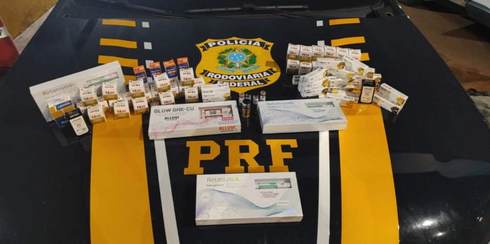 Em vistoria ao veículo, os policiais encontraram grande quantidade de medicamentos escondidos em diversos locais. Foram apreendidas 198 ampolas e 5 canetas de medicamentos emagrecedores, além de um frasco de anabolizante. Os medicamentos estavam escondidos em roupas, pacotes de bolachas, batatas, e no interior de tênis e de um colchão inflável.