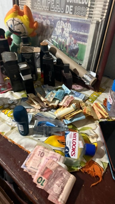Durante a ação, os policiais também apreenderam entorpecentes, além de objetos comumente ligados ao tráfico de drogas, como balança de precisão, materiais utilizados para embalagem e certa quantia em dinheiro em espécie.