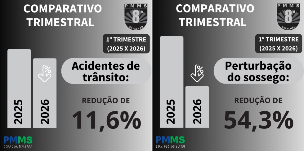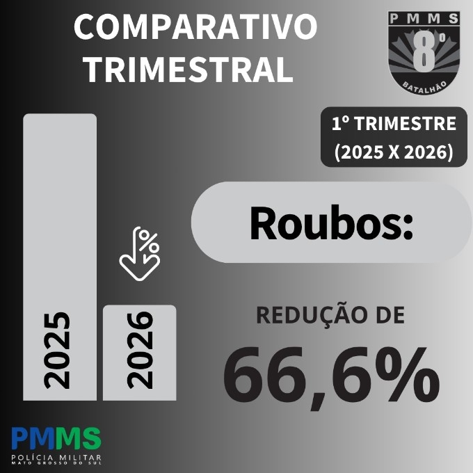 Para a corporação, o balanço do primeiro trimestre reforça o papel da atuação integrada e contínua da Polícia Militar na preservação da ordem pública e na proteção da população sul-mato-grossense.