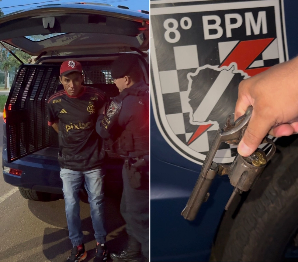 Com base nas características repassadas, os policiais seguiram até o local indicado e conseguiram localizar o suspeito. Durante a abordagem e busca pessoal, a equipe encontrou na cintura do homem um revólver calibre 38, da marca Taurus, com numeração raspada.