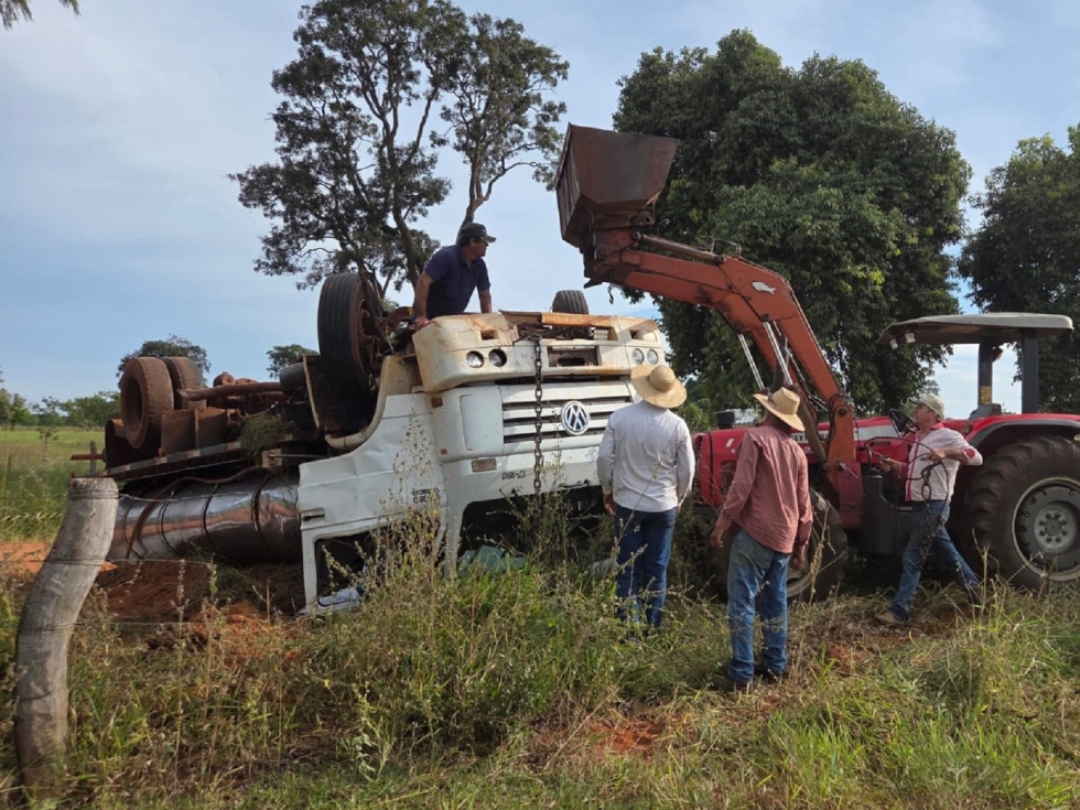 Motorista morre após caminhão carregado com leite tombar no Assentamento Peroba em Nova Andradina