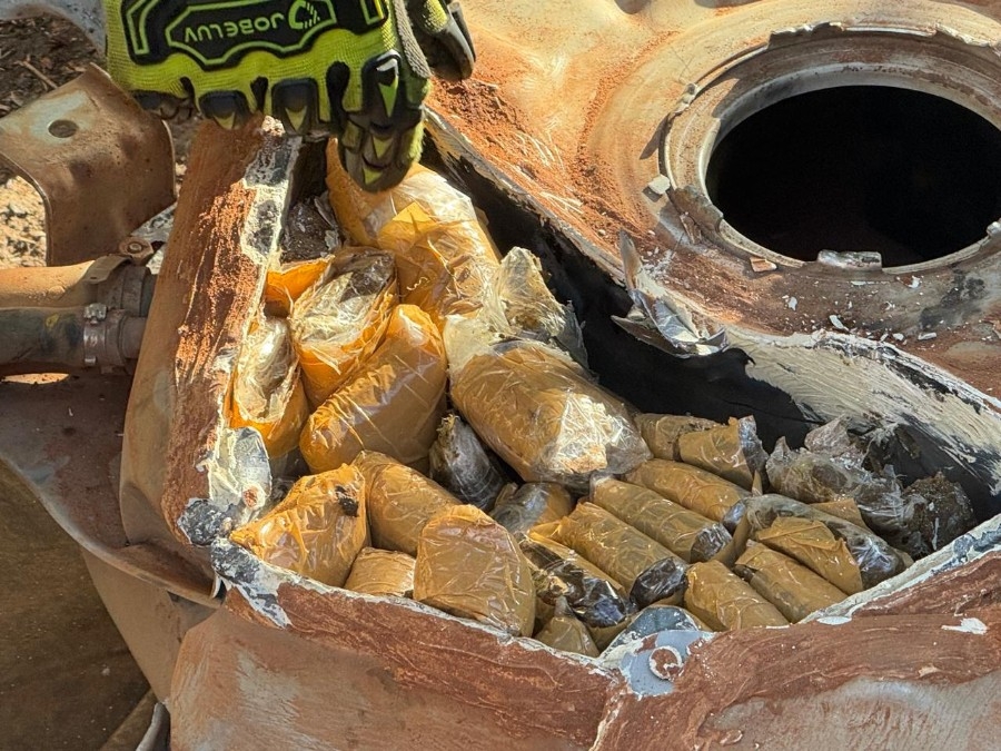 Com apoio do Corpo de Bombeiros Militar, o tanque foi removido e aberto. Dentro dele, os policiais encontraram 88 invólucros de haxixe marroquino, totalizando cerca de 9,3 quilos.